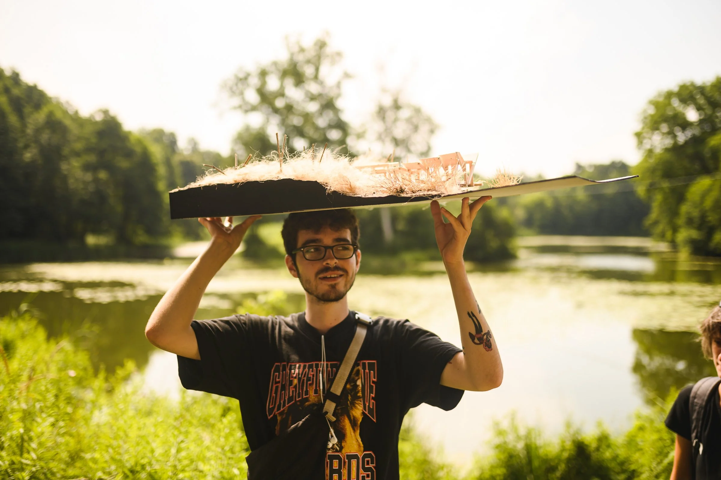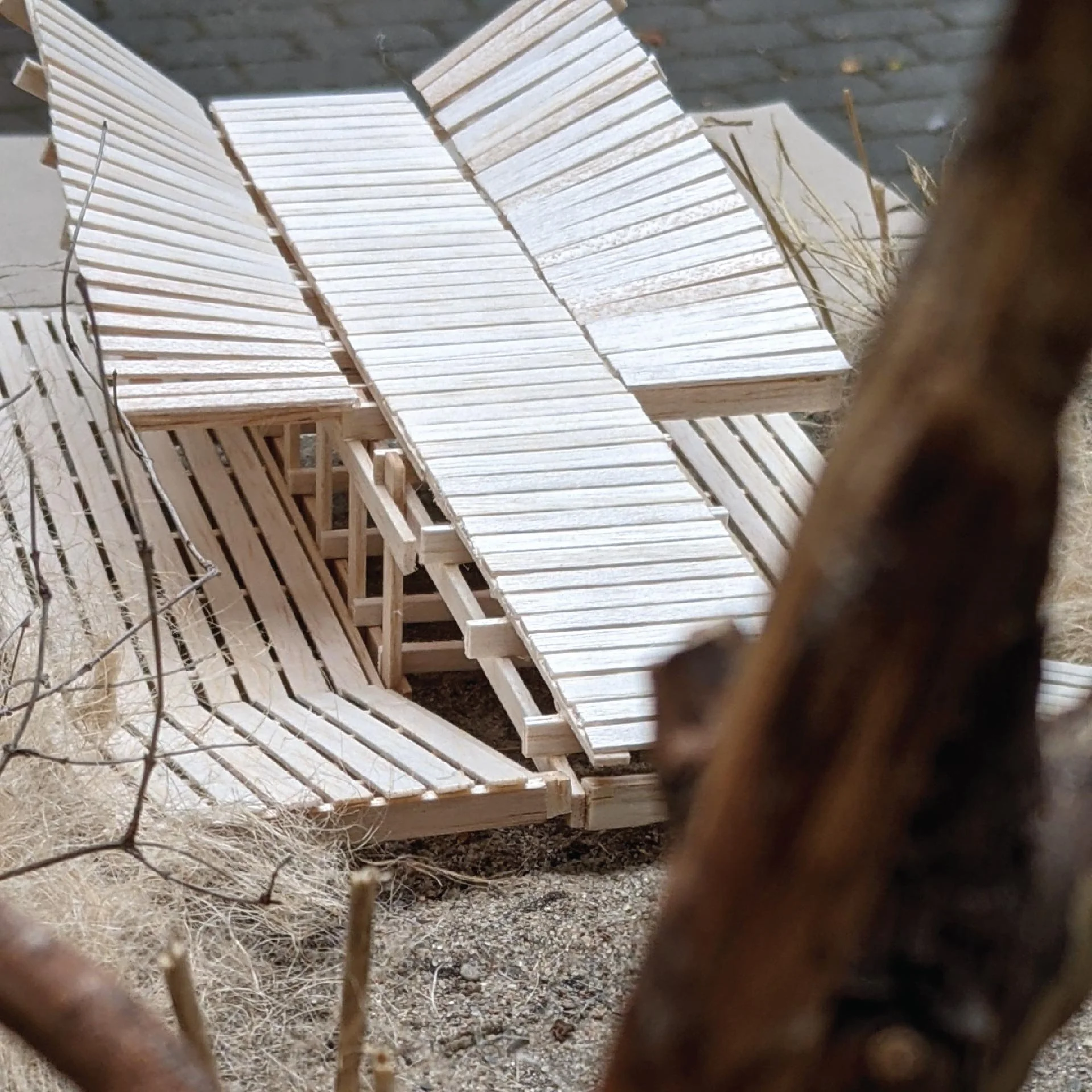 During the first days of the workshop the initial idea of the structure was developed and tested on multiple models, sketches and computer drawings. To ensure that the final design includes ideas from the whole team, the work was structured in multiple stages where the students had to pitch their ideas in the preferred medium and the rest of the team had to pick certain key features to be kept in the next detailing phase. The next phase was started by restating the selected key features from the previous phase upon which each student built their next more detailed idea. As a result, after multiple pitches, the students came to the final design where the ideas of each had been layered.